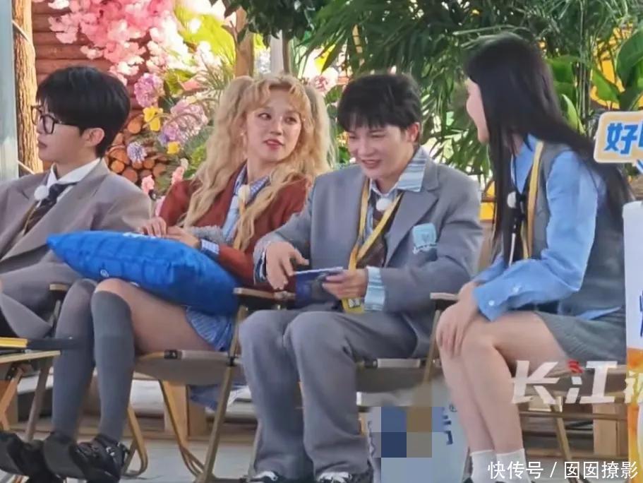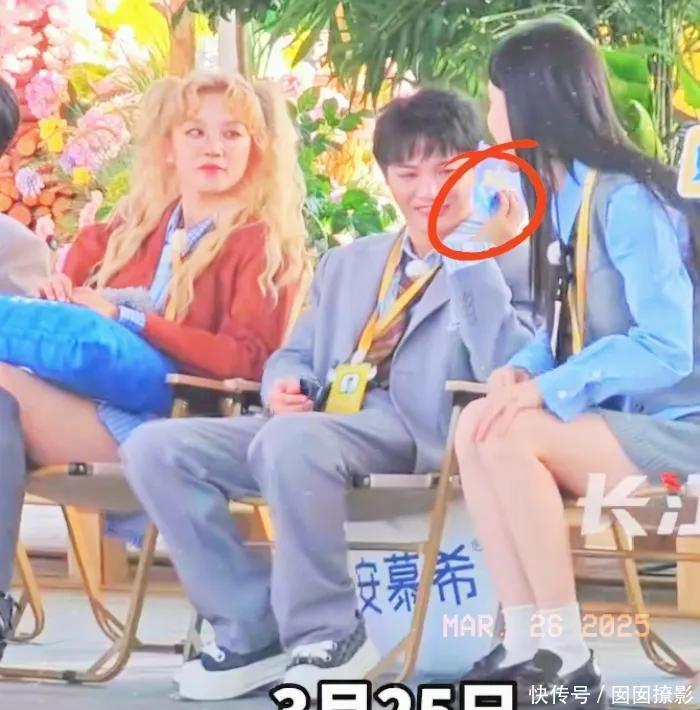 2025年3月25日,有网友在社交平台发布了一段视频,《奔跑吧》武汉录制现场,孟子义穿短裙坐在椅子上,坐在一旁的周深见状,主动脱下了自己的西装外套,然后开在了孟子义的一双美腿上。