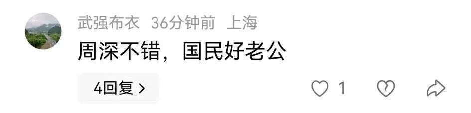 一位来自上海的网友在评论区调侃,周深不错,国民好老公,这位上海网友的评论可谓是一针见血,周深也一下成为了新晋国民老公。