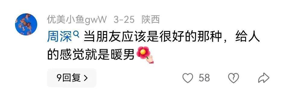一位来自陕西的网友在评论区留言,周深当朋友应该是最好的那种,看起来就是一个暖男。